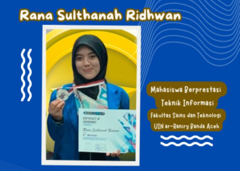 Fakultas Sains dan Teknologi Universitas Islam Negeri Ar-Raniry Banda Aceh terus mencetak mahasiswa berprestasi di bidang akademik. Salah satu mahasiswa terbaik yang berhasil mengukir berbagai pencapaian adalah Rana Sulthanah Ridhwan, lulusan terbaik Fakultas Sains dan Teknologi dan Program Studi Teknologi Informasi dengan IPK 3,95 dalam Wisuda dan Yudisium Gelombang I tahun 2025.