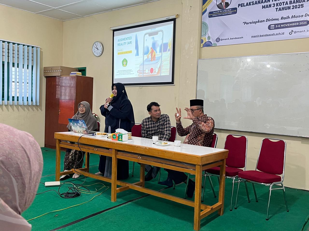 Program Studi Kimia Fakultas Sains dan Teknologi (FST) UIN Ar-Raniry Banda Aceh bekerja sama dengan Program Studi Teknik Informasi (TI) FST UIN Ar-Raniry melaksanakan kegiatan Pengabdian kepada Masyarakat (PkM) di MAN 3 Banda Aceh.