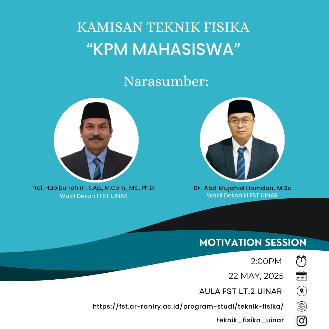 Kegiatan Kamisan Teknik Fisika merupakan agenda rutin yang menjadi media penguatan karakter dan wawasan mahasiswa Teknik Fisika UIN Ar-Raniry. Kegiatan ini juga menjadi salah satu bentuk komitmen program studi dalam mendukung internasionalisasi pendidikan tinggi serta peningkatan mutu lulusan.