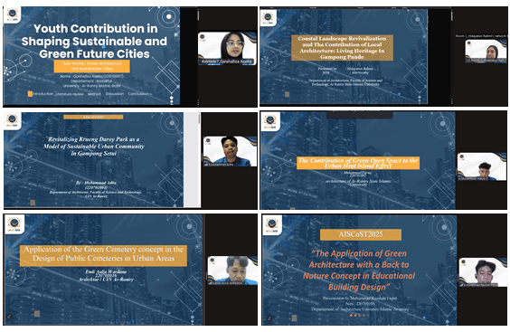 Enam mahasiswa Program Studi Arsitektur Fakultas Sains dan Teknologi (FST) UIN Ar-Raniry Banda Aceh tampil menonjol dalam ajang 1st Aceh International Student Conference on Science and Technology (AISCoST 2025) yang digelar secara daring melalui Zoom. Konferensi internasional mahasiswa yang mengangkat tema “Youth Innovation and Research for a Sustainable Future” ini menjadi wadah bagi generasi muda untuk menunjukkan gagasan dan riset inovatif menuju pembangunan berkelanjutan.