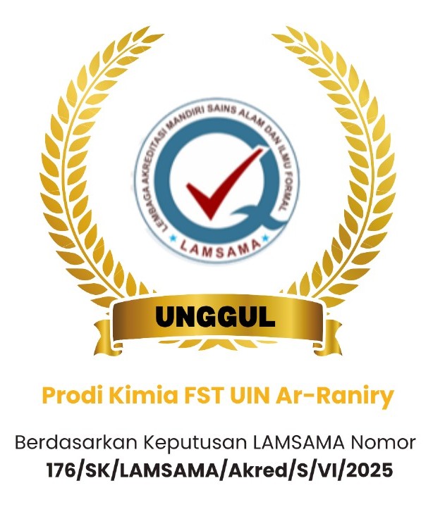 Banda Aceh (FST Ar-Raniry) - Kabar gembira datang dari Fakultas Sains dan Teknologi UIN Ar-Raniry Banda Aceh, Program Studi Kimia berhasil meraih akreditasi UNGGUL dari Lembaga Akreditasi Mandiri Sains Alam dan Ilmu Formal (LAMSAMA), sebagaimana tertuang dalam Keputusan LAMSAMA Nomor : 176/SK/LAMSAMA/Akred/S/VI/2025.